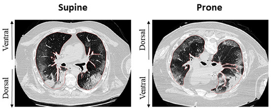 - Albert, R.K.; Hubmayr, R.D. The Prone Position Eliminates Compression of the Lungs by the Heart. Am. J. Respir. Crit. Care Med. 2000, 161, 1660–1665. [Google Scholar] [CrossRef] [PubMed]