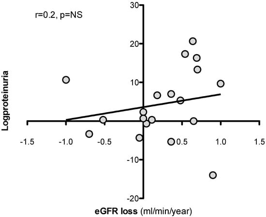 Relationship between logproteinuria and eGFR loss at follow up (3 years).