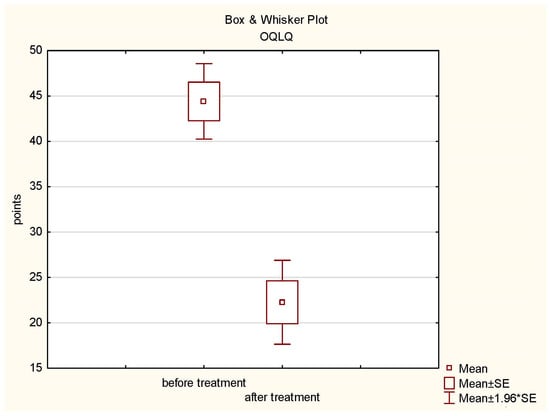 Box plot of OQLQ before and after treatment.