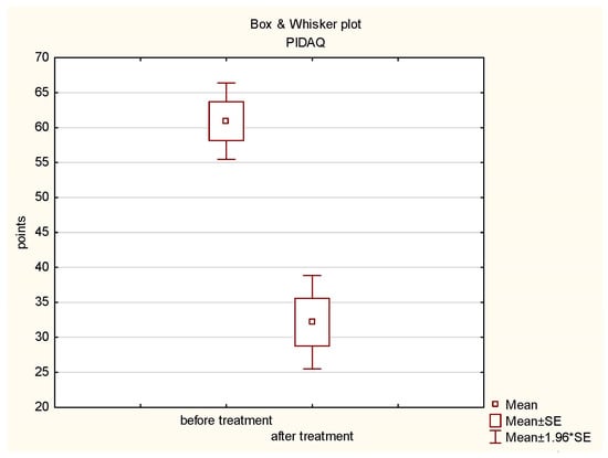 Box plot of PIDAQ before and after treatment.
