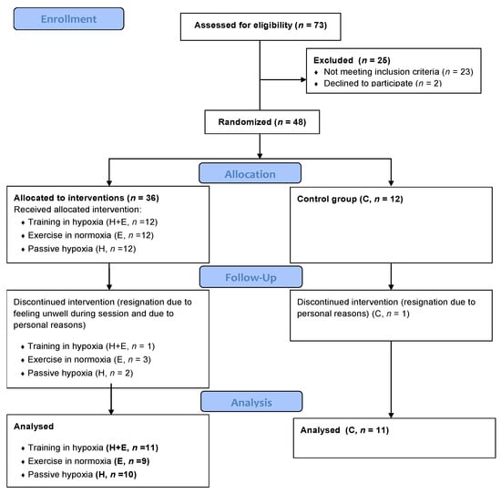 - Kong, Z.; Lei, O.K.; Sun, S.; Li, L.; Shi, Q.; Zhang, H.; Nie, J. Hypoxic repeated sprint interval training improves cardiorespiratory fitness in sedentary young women. J. Exerc. Sci. Fit. 2022, 20, 100–107. [Google Scholar] [CrossRef]