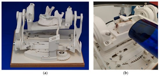 The mechanics contained here made it possible to change the angle between the radiation tube and the test objects in precise, predefined steps. By this, a biangular deviation in the vertical and horizontal directions was imitated. (Figure 2b) The displacement of the angle was minus 15 degrees to plus 15 degrees in steps of 5 degrees in the vertical plane and minus 8 degrees to plus 8 degrees in steps of 3 degrees in the horizontal plane. The test stand was designed by a technical engineer (Konrad Felix Fellner e.U., Graz, Austria) in the programs Rhino V4® (Robert McNeel & Associates, Seattle, Washington, DC, USA) and Solidworks 2017® (Dassault Systèmes SolidWorks Corporation, Waltham, MA, USA).