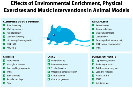 - Kotloski, R.J.; Sutula, T.P. Environmental enrichment: Evidence for an unexpected therapeutic influence. Exp. Neurol. 2015, 264, 121–126. [Google Scholar] [CrossRef] [PubMed]