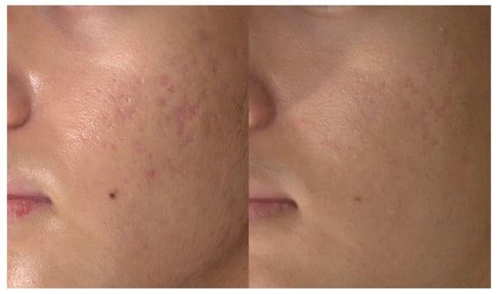 - An, M.K.; Hong, E.H.; Suh, S.B.; Park, E.J.; Kim, K.H. Combination therapy of microneedle fractional radiofrequency and topical poly-lactic acid for acne scars: A randomized controlled split-face study. Dermatol. Surg. 2020, 46, 796–802. [Google Scholar] [CrossRef] [PubMed]