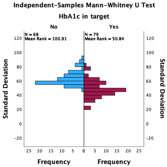 | HbA1c < 7% (n = 79) | HbA1c ≥ 7% (n = 68) | p-Value | |