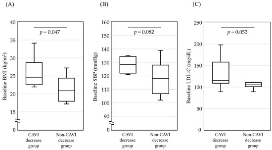 | Variables | CAVI Decrease Group | Non-CAVI Decrease Group | p Value * |