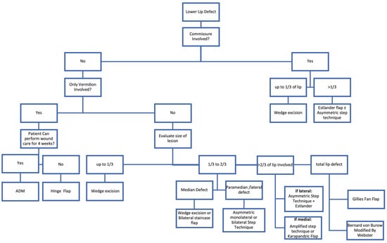 - Sanniec, K.; Harirah, M.; Thornton, J.F. Lip Reconstruction after Mohs Cancer Excision: Lessons Learned from 615 Consecutive Cases. Plast. Reconstr. Surg. 2020, 145, 533–542. [Google Scholar] [CrossRef]