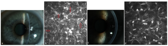 The ophthalmological evaluation at baseline as well as at follow-up included: an autorefractometer (model AR-360A, Nidek Co, Wetzlar, Germany), best-corrected visual acuity (BCVA) measured with Snellen charts; slit lamp biomicroscopy, fundoscopy, optical coherence tomography (OCT, Spectralis: anterior segment module and macular volume scan, Heidelberg Engineering, Heidelberg, Germany) of the cornea and macula, Goldmann applanation tonometry and IVCM (HRT2-04318 Rostock Cornea Model, Heidelberg Engineering GmbH, Heidelberg, Germany) [2].