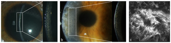 - Singh, K. Immunotactoid microtubular corneal deposits in bilateral paraprotein crystalline keratopathy. Cornea 2009, 28, 829–831. [Google Scholar] [CrossRef]