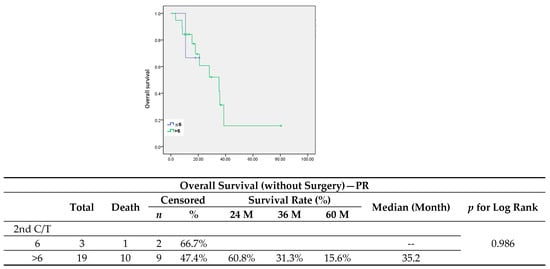 Overall survival in patients without surgery who had a partial response after 6 cycles of chemotherapy.