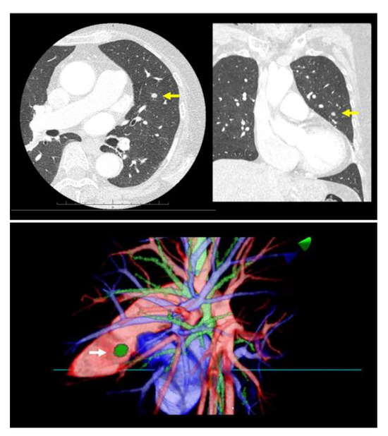 - Chan, E.G.; Landreneau, J.R.; Schuchert, M.J.; Odell, D.D.; Gu, S.; Pu, J.; Luketich, J.D.; Landreneau, R.J. Preoperative (3-dimensional) computed tomography lung reconstruction before anatomic segmentectomy or lobectomy for stage I non-small cell lung cancer. J. Thorac. Cardiovasc. Surg. 2015, 150, 523–528. [Google Scholar] [CrossRef] [PubMed]