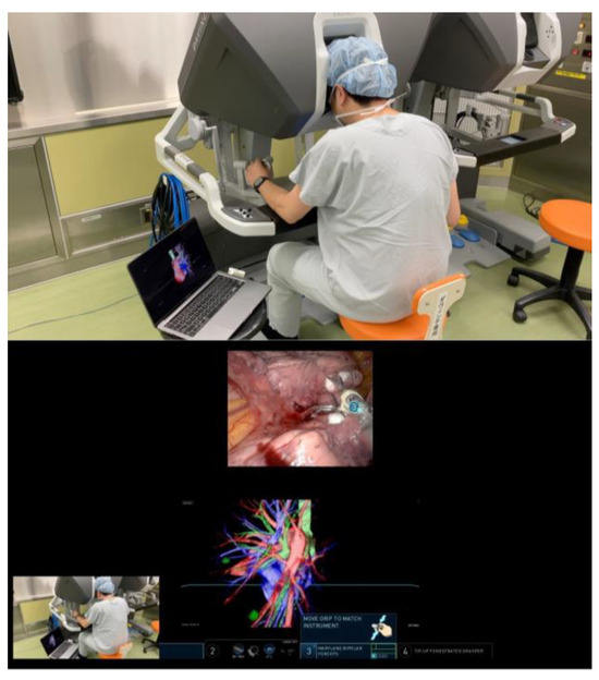Theoretically, if automated registration of surgical console images to the 3D reconstructions were incorporated into the Perspectus VR Education software, surgeons could perform real-time surgical resections with dynamic overlays provided by the software. This advanced level of integration, which allows manipulation of the 3D models on a laptop, is uniquely feasible in the context of robotic surgery. The surgical console, designed to immerse the surgeon in the local conditions of the operation, plays a crucial role in reducing informational overload. It allows surgeons to naturally project and understand intricate anatomy without additional mental effort, thereby significantly enhancing the decision-making process during critical phases of the surgery, such as during dissections and the application of staples to various anatomical structures.