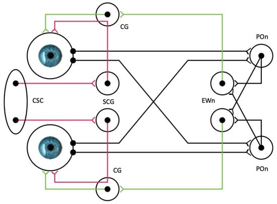 - Dragoi, V. Section 3: Motor Systems Chapter 7: Ocular Motor System; The University of Texas, McGovern Medical School: Austin, TX, USA, 1997; Available online: https://nba.uth.tmc.edu/neuroscience/m/s3/chapter07.html (accessed on 1 January 2024).