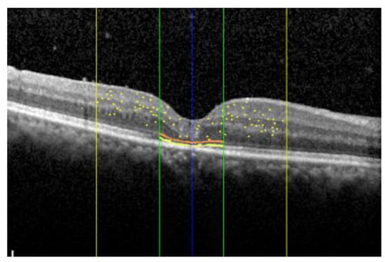 The term “hyperreflective foci (HRF)” was introduced to characterize hyperreflective lesions with a focal or dotted appearance, observed at various retinal layers using OCT imaging. Nonetheless, the exact pathological connection of HRF remains unclear, encompassing possibilities such as lipid leakage, the migration of RPE cells, the presence of macrophages/microglia, and degenerated photoreceptor cells [].