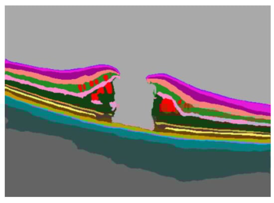 Although the exact nature of SRF remains unclear, Shimozono et al. have suggested that the mere existence of SRF appears to be a regular aspect, or at least not a detrimental aspect, of the reparative mechanism in macular holes (MHs). Given that the presence of SRF could impact the thickness of the photoreceptor outer segment, a lower SRF height combined with an increased outer foveal thickness may be considered advantageous. Nevertheless, the recovery of photoreceptor outer segments can contribute to positive visual function outcomes, even in the presence of persistent SRF []. When the SRF volume was noticeably shallow, it was not easily discerned from the cone outer segment tips (COST) line by the AI software. The COST line is a highly reflective line detected between the EZ and the bright retinal pigment epithelium line []. Moreover, Govetto et al. recently investigated another specific biomarker located at this level, known as supra-RPE granular deposits, which add complexity to the morphological features of these layers [].