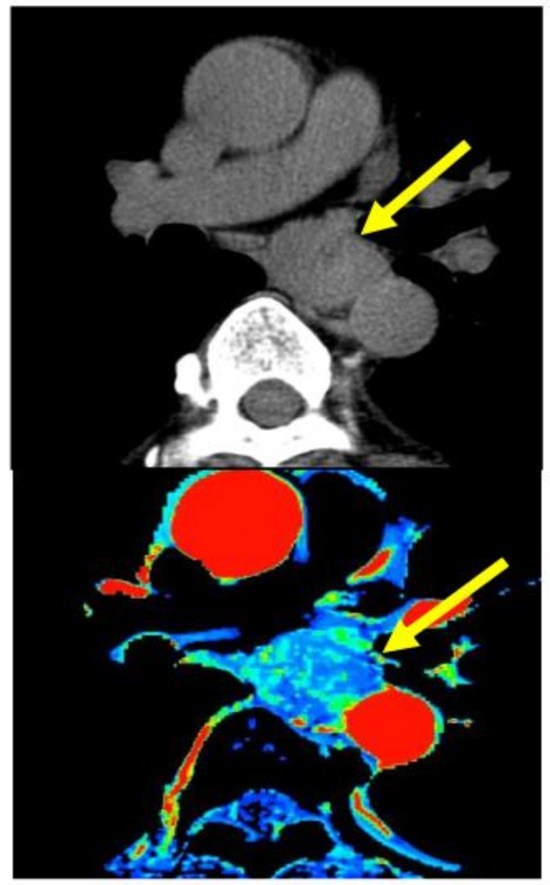 - Hayano, K.; Okazumi, S.; Shuto, K.; Matsubara, H.; Shimada, H.; Nabeya, Y. Perfusion CT can predict the response to chemoradiation therapy and survival in esophageal squamouscell carcinoma: Initial clinical results. Oncol. Rep. 2007, 18, 901–908. [Google Scholar]