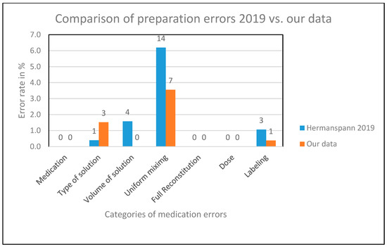 As in the study of Hermanspann et al. [20], we observed no errors in the categories “medication”, “reconstitution”, and “dose”.