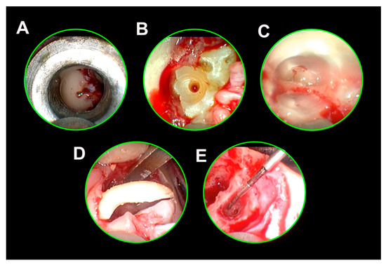The bone fragments were subsequently removed under endoscopic vision (Figure 3D,E).