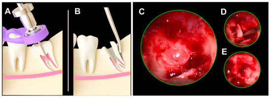 - Engelke, W.; Beltrán, V.; Fuentes, R.; Decco, O. Endoscopically Assisted Root Splitting (EARS): Method and First Results. Int. J. Odontostomat. 2012, 6, 313–316. [Google Scholar] [CrossRef]