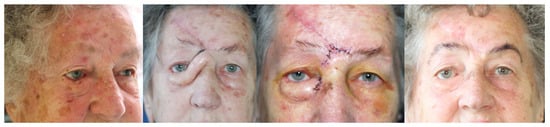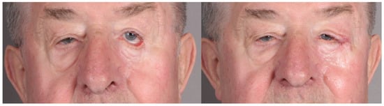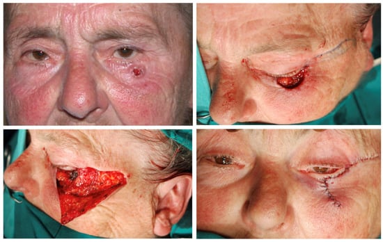 - Balchev, G. Complications and Recurrences after Excision and Reconstruction of Eyelid Tumours. Curr. Oncol. 2024, 31, 1713–1724. [Google Scholar] [CrossRef]