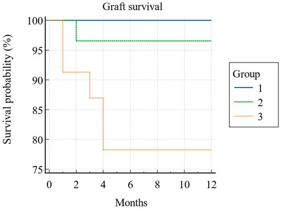 | One-year graft survival | 27 (36.9) | 28 (38.4) | 18 (24.7) | 0.287 |