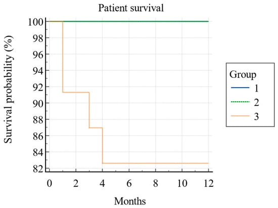 | One-year patient survival | 27 (36) | 29 (38.7) | 19 (25.3) | 0.326 |