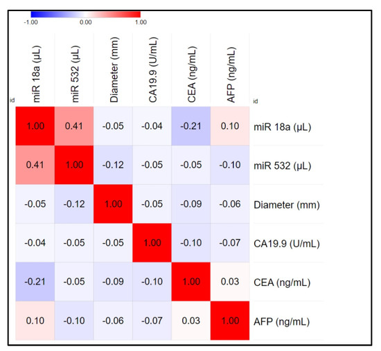 Heat map representing the correlations between miRNA and conventional tumor markers.