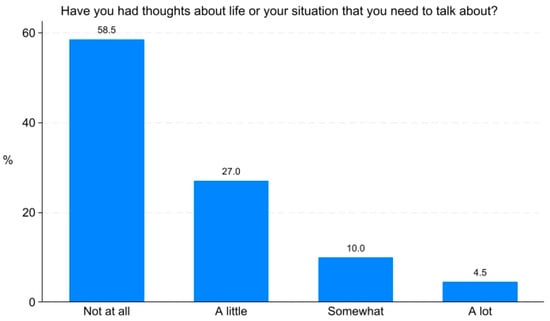The PRO-Pall item ‘Have you been able to share your feelings with your family or friends as much as you would like?’, resulted in 44.5% patients responding ‘all the time’, 31.8% ‘most of the time’, 10% ‘sometimes’, 10.9% ‘rarely’, and 2.7% ‘not at all’.