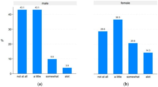 Gender differences in ‘During the past week, have you missed intimacy’: (a) responses from male participants; (b) responses from female participants.