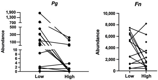 | Pg | Wilcoxon | 0.017 | 251.4 CFU/mL | −11.20 | 513.9 | r = 0.714 | ||