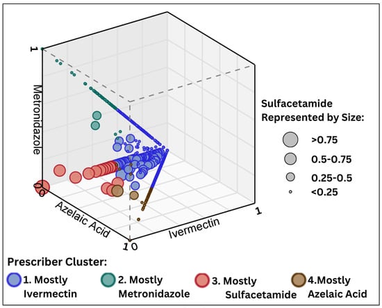 APA StyleNicholas, A., Spraul, A., & Fleischer, A. B., Jr. (2024). Prescriber Phenotypes: Variability in Topical Rosacea Treatment Patterns Among United States Dermatologists. Journal of Clinical Medicine, 13(20), 6275. https://doi.org/10.3390/jcm13206275