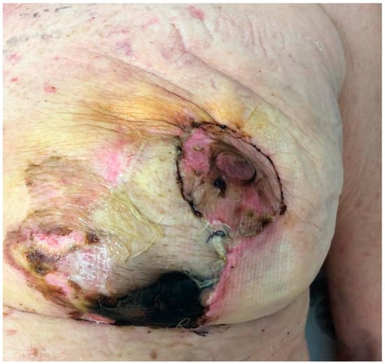 - Lanitis, S.; Kontos, M.; Chortis, P.; Gkanis, V.; Peristeraki, S.; Lainas, S.; Hadjiminas, D.J. De-Epithelialized Skin Flaps to Minimize Complications in Large Breast Reconstruction: A Tailored Approach. Ann. Plast. Surg. 2021, 87, 16–23. [Google Scholar] [CrossRef] [PubMed]
