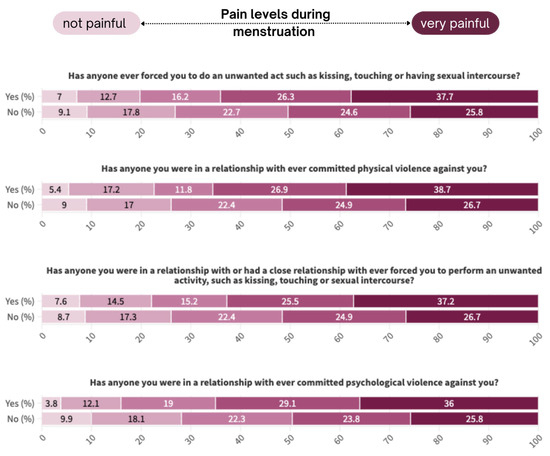 Respondents who experienced both physical (p = 0.034) and psychological (p = 0.001) intimate partner violence significantly more often reported a higher degree of painful periods. A summary of these responses are shown in Figure 2 below.