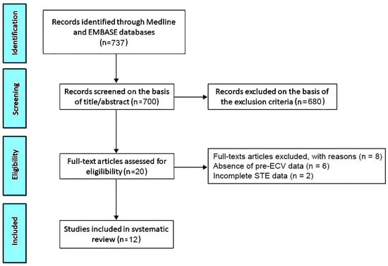 Flow diagram used for identifying the included studies. ECV, electrical cardioversion; STE, speckle tracking echocardiography.