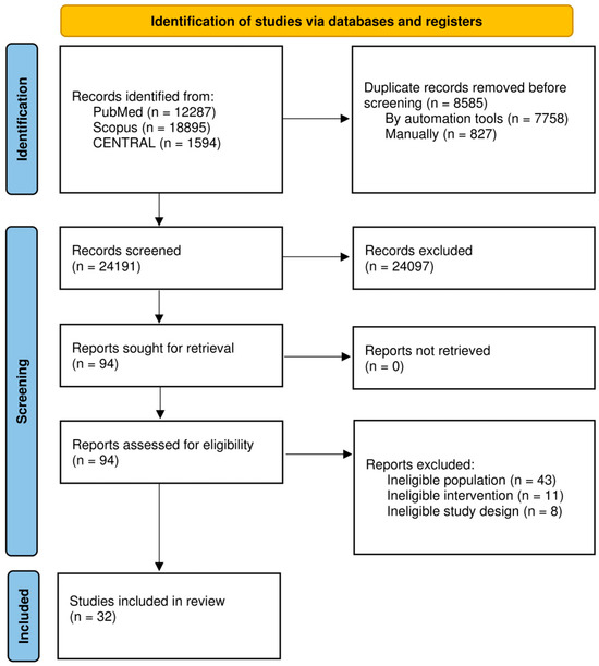 - Higgins, J.P.T.; Thomas, J.; Chandler, J.; Cumpston, M.; Li, T.; Page, M.J.; Welch, V.A. (Eds.) Cochrane Handbook for Systematic Reviews of Interventions; Version 6.4; Updated August 2023; Cochrane, 2023; Available online: www.training.cochrane.org/handbook (accessed on 10 October 2023).
