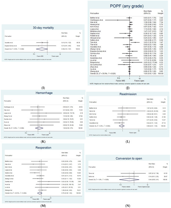 - Pfister, M.; Probst, P.; Müller, P.C.; Antony, P.; Klotz, R.; Kalkum, E.; Merz, D.; Renzulli, P.; Hauswirth, F.; Muller, M.K. Minimally invasive versus open pancreatic surgery: Meta-analysis of randomized clinical trials. BJS Open 2023, 7, zrad007. [Google Scholar] [CrossRef]