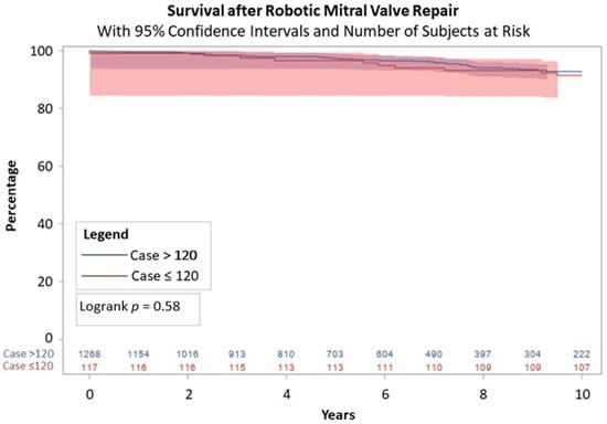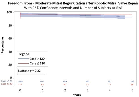 - Roach, A.; Trento, A.; Emerson, D.; Gill, G.; Rowe, G.; Peiris, A.; Hussaini, A.; Cheng, W.; Ramzy, D.; Egorova, N.; et al. Durable Robotic Mitral Repair of Degenerative Primary Regurgitation with Long-Term Follow-Up. Ann. Thorac. Surg. 2022, 114, 84–90. [Google Scholar] [CrossRef]