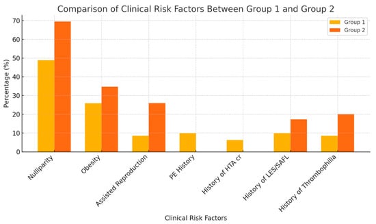 Comparison of clinical risk factors between group 1 and group 2.