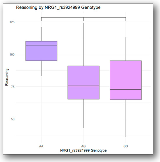 Further, both the logistic regression and ANOVA analyses consistently indicated that the AA genotype of NRG1 rs3294999 is associated with better reasoning performance compared to the AG and GG genotypes. This suggests that the AA genotype may confer a protective effect on reasoning abilities, which are often impaired in schizophrenia. This finding is particularly important for clinical practice, as reasoning skills are linked to functional outcomes in schizophrenia [