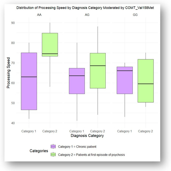 COMT gene variation and cognitive performance at different stages of the illness suggests that genetic factors may contribute to cognitive decline as the disease progresses. These findings highlight the potential clinical value of early interventions aimed at preserving cognitive function, particularly processing speed, in patients at risk of developing chronic schizophrenia or schizoaffective disorder. Early, personalized treatment strategies targeting cognitive decline could improve functional outcomes and delay further cognitive deterioration [