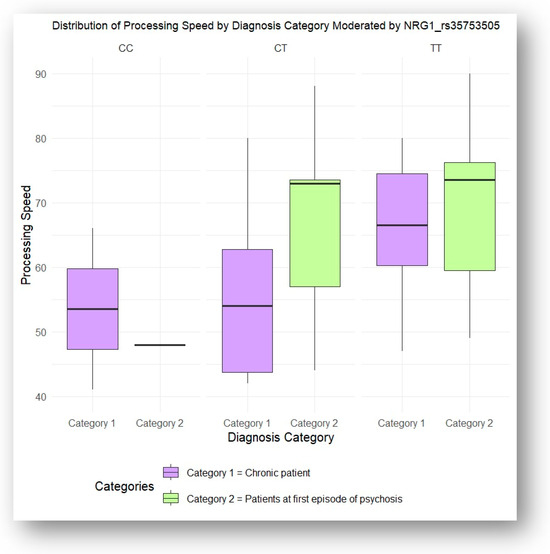56], a clear role of its genotype related to cognitive function in this disorder has not been established yet. Another study investigating cognitive functions in patients suffering from schizophrenia and the impact of NRG1 rs35753505 on cognition found similar correlations between genotype status and semantic verbal fluency. Specifically, patients homozygous for the C-allele (CC) performed worse on verbal fluency tasks compared to those carrying the T-allele (TT or CT genotypes) [