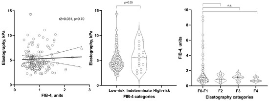 3.4. FIB-4, Liver Stiffness, and Steatosis in IBD Patients