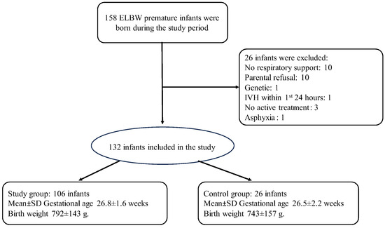 A total of 158 ELBW premature infants were born during the study period between March 2018 and September 2021 (Figure 1).