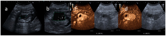 All the CEUS examinations were performed using a Canon Aplio a550 ultrasound machine (Canon Europe, Amstelveen, The Netherlands). Gray-scale B-mode ultrasound was employed for kidney lesion detection, kidney size assessment, and evaluation of echogenicity and homogeneity using a convex array transducer. The kidney was routinely examined in modified longitudinal and transverse planes and, if necessary, in deep inspiration and with optimized scanning positions. The CEUS examinations were performed during clinical routines using high-end ultrasound systems equipped with the most up-to-date CEUS-specific protocols available at the time of the examination (Figure 1).