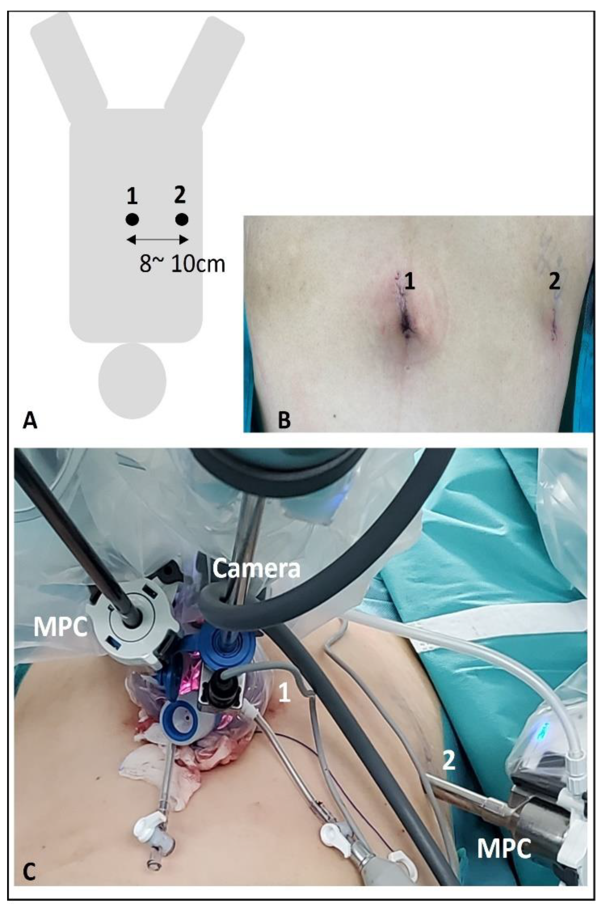 - Shin, H.J.; Yoo, H.K.; Lee, J.H.; Lee, S.R.; Jeong, K.; Moon, H.S. Robotic single-port surgery using the da Vinci SP® surgical system for benign gynecologic disease: A preliminary report. Taiwan J. Obstet. Gynecol. 2020, 59, 243–247. [Google Scholar] [CrossRef]