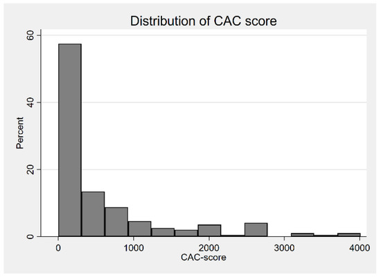 The histograms concerning the distribution of the CAC score and the coronary age are presented in Figure 2 and Figure 3.