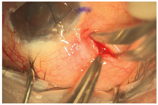 Limbal sparing radial pocket. This is placed 5 mm behind the limbus and extended approximately 8–10 mm posteriorly.