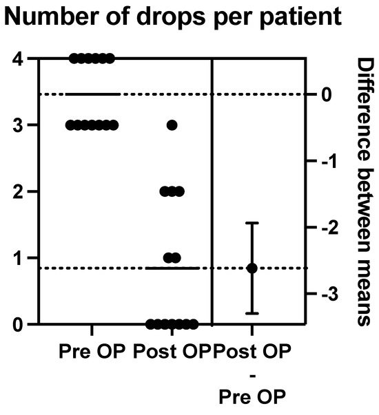The above schematic outlines the change in pre-operative to post-operative number of drops per patient.