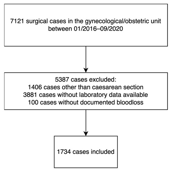 We screened the electronic health records of all women who underwent surgery at the Department of Obstetrics and Gynecology of the Medical University of Vienna, Austria, from January 2015 to December 2019 for study eligibility. We included all CS patients who had laboratory parameters determined up to seven days prior to the date of CS. For all eligible patients, we exported the following data from the IntelliSpace Critical Care and Anaesthesia patient data management system (Philips Austria GmbH, Vienna, Austria): age, documented blood loss, administered red blood cell (RBC) transfusions, and laboratory parameters (hemoglobin concentration, platelet count, fibrinogen concentration, aPTT, and PT); all data were obtained within the seven days prior to CS. We excluded patients who were missing all laboratory parameters. Data were accessed on 9 November 2022. The authors could identify individual participants during data collection. The primary outcome of our study was the development of primary PPH, which we defined as (a) documented blood loss of at least 1 L and/or (b) documented administration of at least one RBC concentrate intraoperatively or in the following 24 h. Secondary outcomes included the individual components of the composite primary outcome. Exposure variables included hemoglobin concentration, fibrinogen concentration, aPTT, and PT. We stratified all study participants according to gestational age into four groups based on the World Health Organization’s definition of premature birth: extremely preterm for gestational age < 28 weeks, very preterm for gestational age between 28 and 32 weeks, late and moderate preterm (LAMP) for gestational age between 32 and 37 weeks, and term for gestational age ≥ 37 weeks [20]. We did not perform a sample size calculation for this study, as we analyzed all patients available in our database.
