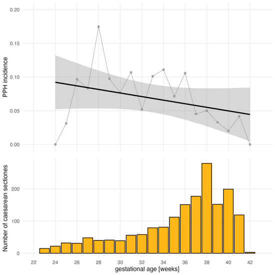 The following supporting information can be downloaded at: https://www.mdpi.com/article/10.3390/jcm13216604/s1, Table S1: Adjusted odds ratios for documented blood loss of at least 1000 mL stratified by gestational age group, Table S2: Adjusted odds ratios for administration of at least one red blood cell concentrate stratified by gestational age group.